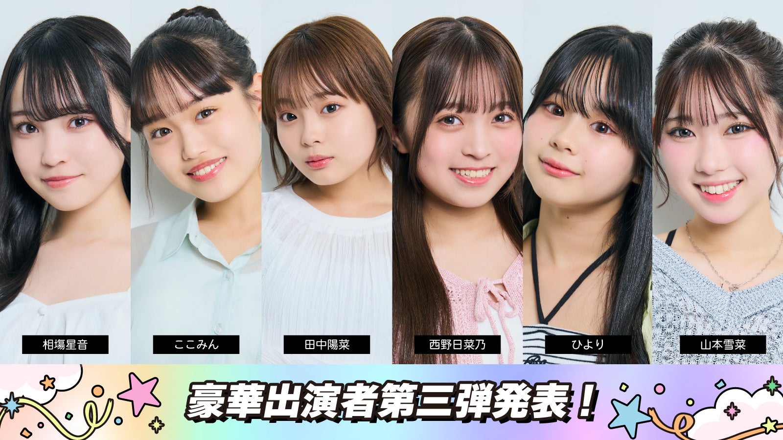 内山優花/沢田京海(トメイトゥ)/本望あやか/実熊瑠琉/今井暖大/林京介/ひまひま/藤田みあ/古園井寧々/瀬川陽菜乃/田中碧空/平松想乃/あいさ/小國舞羽/関谷瑠紀/代田萌花/せらぴー(土屋惺来)/百田汐里/相塩星音/ここみん/田中陽菜/西野日菜乃/ひより/山本雪菜/おさき/長浜広奈/本田紗来