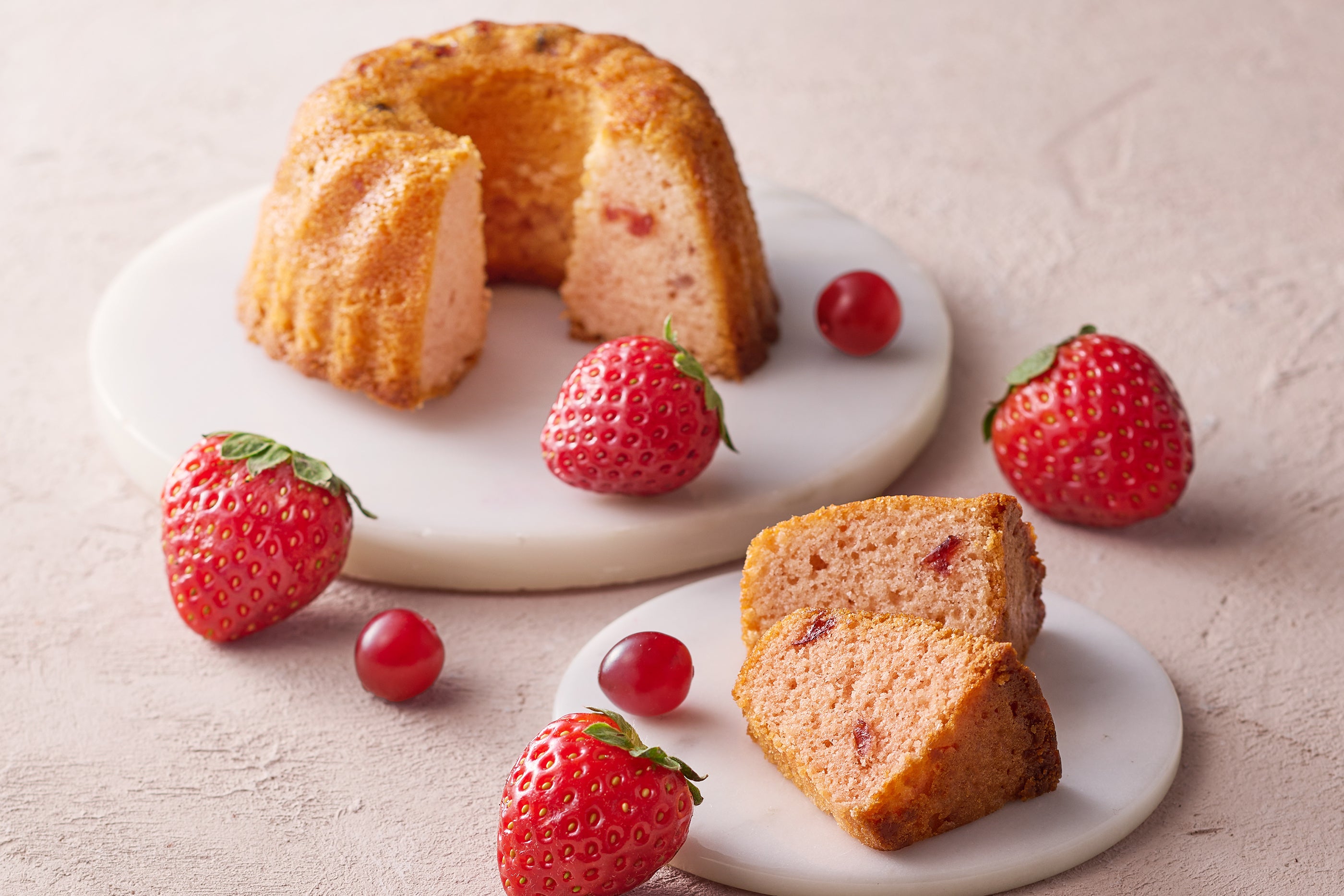 ニュージーランドで作られたグラスフェッドバターを使用し、しっとりと焼き上げた生地に、福岡県産あまおう苺のやさしい甘みを重ねた、ここだけの味わいです。アクセントに添えたクランベリーの甘酸っぱさが、後を引く美味しさ。