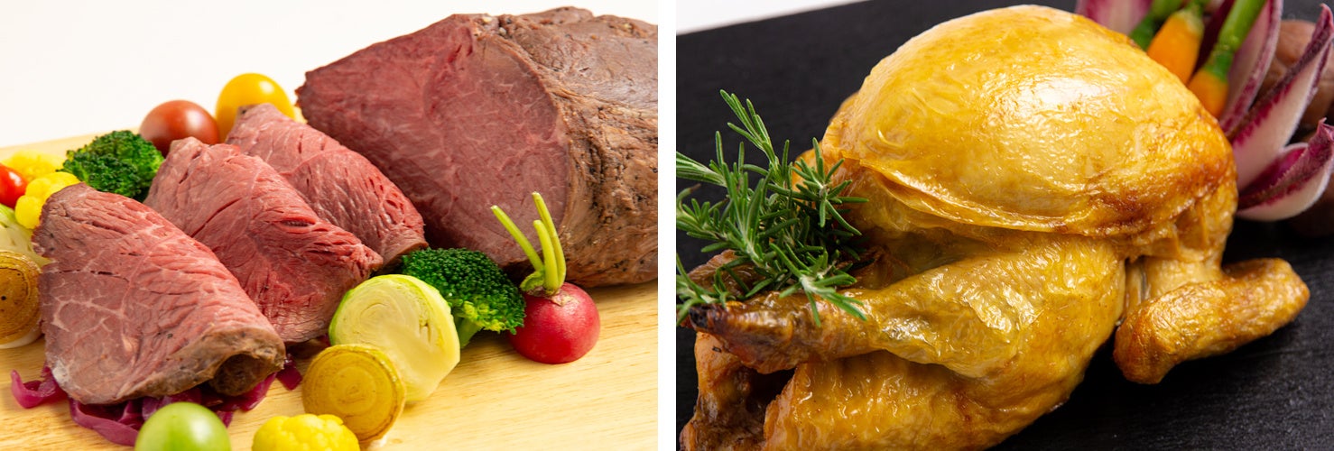ハーブチキンのロースト / ローストビーフ 醤油トリュフソース / サーモンマリネ ドライトマトとバルサミソース / 聖夜を彩るスウィーツ