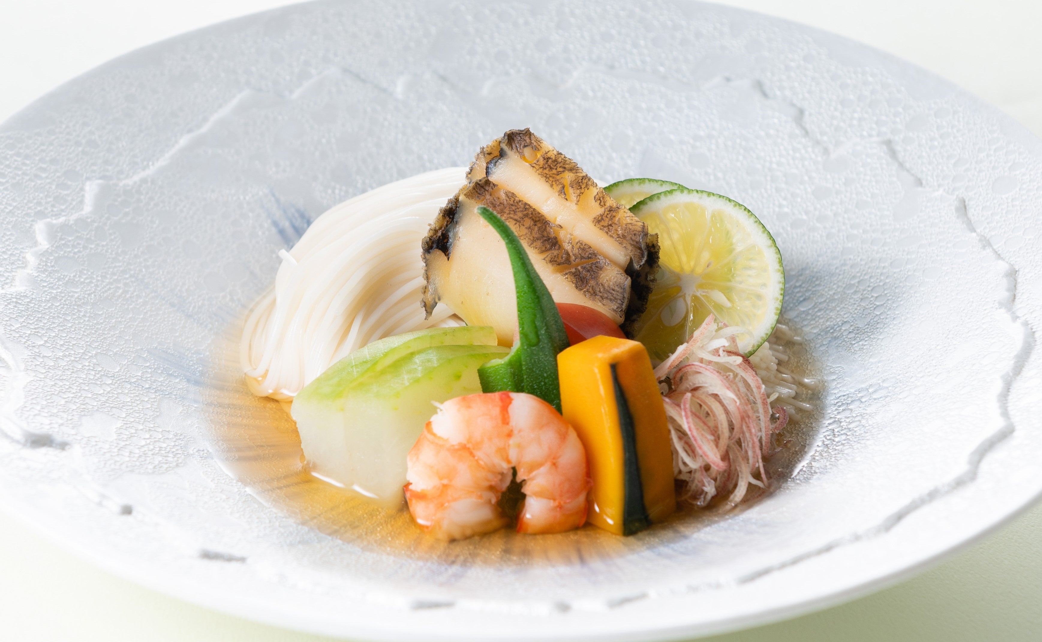 ◇ 煮鮑と夏野菜の贅沢酢橘素麺