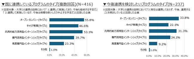 大学との連携では「オープンカンパニー」に次ぎ、「汎用的能力活用型インターンシップ」に注目が高まる