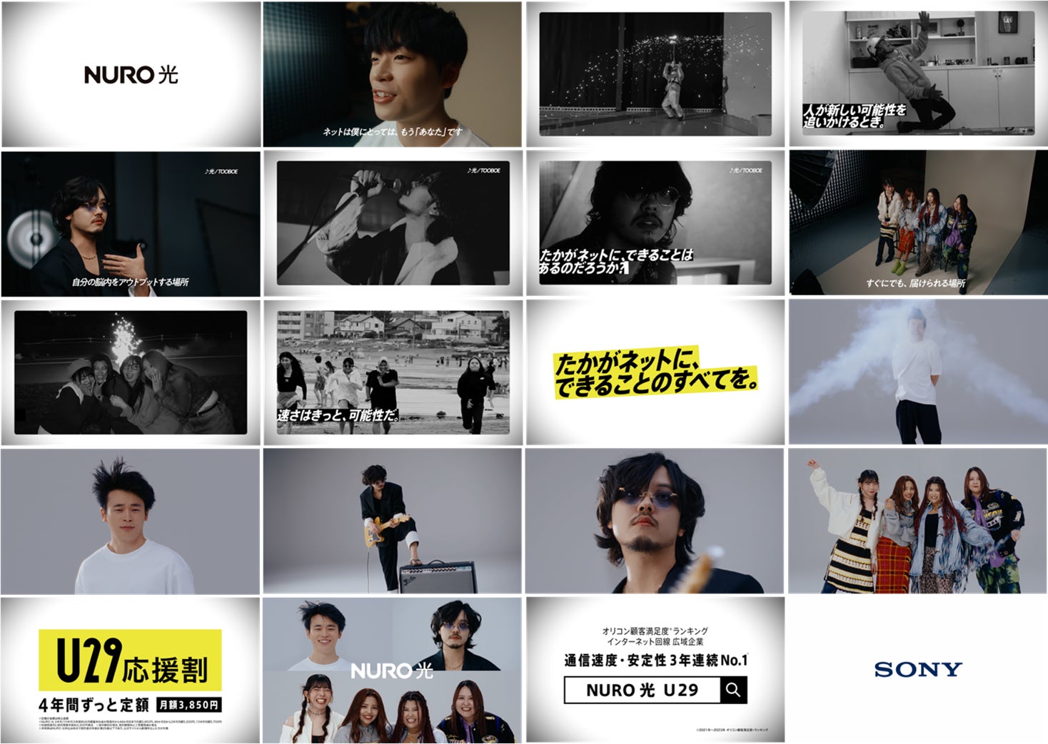 なお、本WEB-CM公開を皮切りに、すしらーめん《りく》、TOOBOE、ぜろぷりが登場するコンテンツを続々公開します。2月下旬よりブレイクするまでの道のりに迫ったドキュメンタリー動画を順次公開し、3月からは東京都渋谷区の原宿の駅や街にグラフィックを掲出する予定です。また、「NURO 光」の公式X(旧Twitter)では、キャンペーン投稿を引用リポストして指定のハッシュタグ「#わたしにとってネットとは」をつけて投稿すると、パーソナルコンピューター VAIO® が抽選で当たるキャンペーンを実施します。