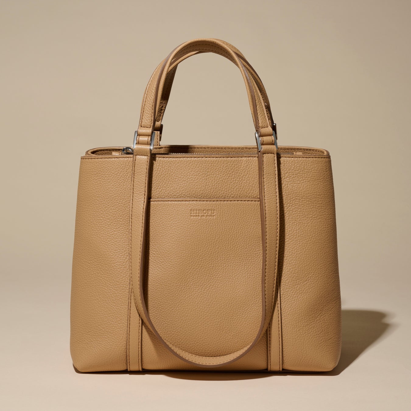 中でも新型のトートバッグは、2WAYのハンドル、仕切り、外ポケット、ファスナーと、シンプルな見た目に驚くほどの機能が詰まっています。