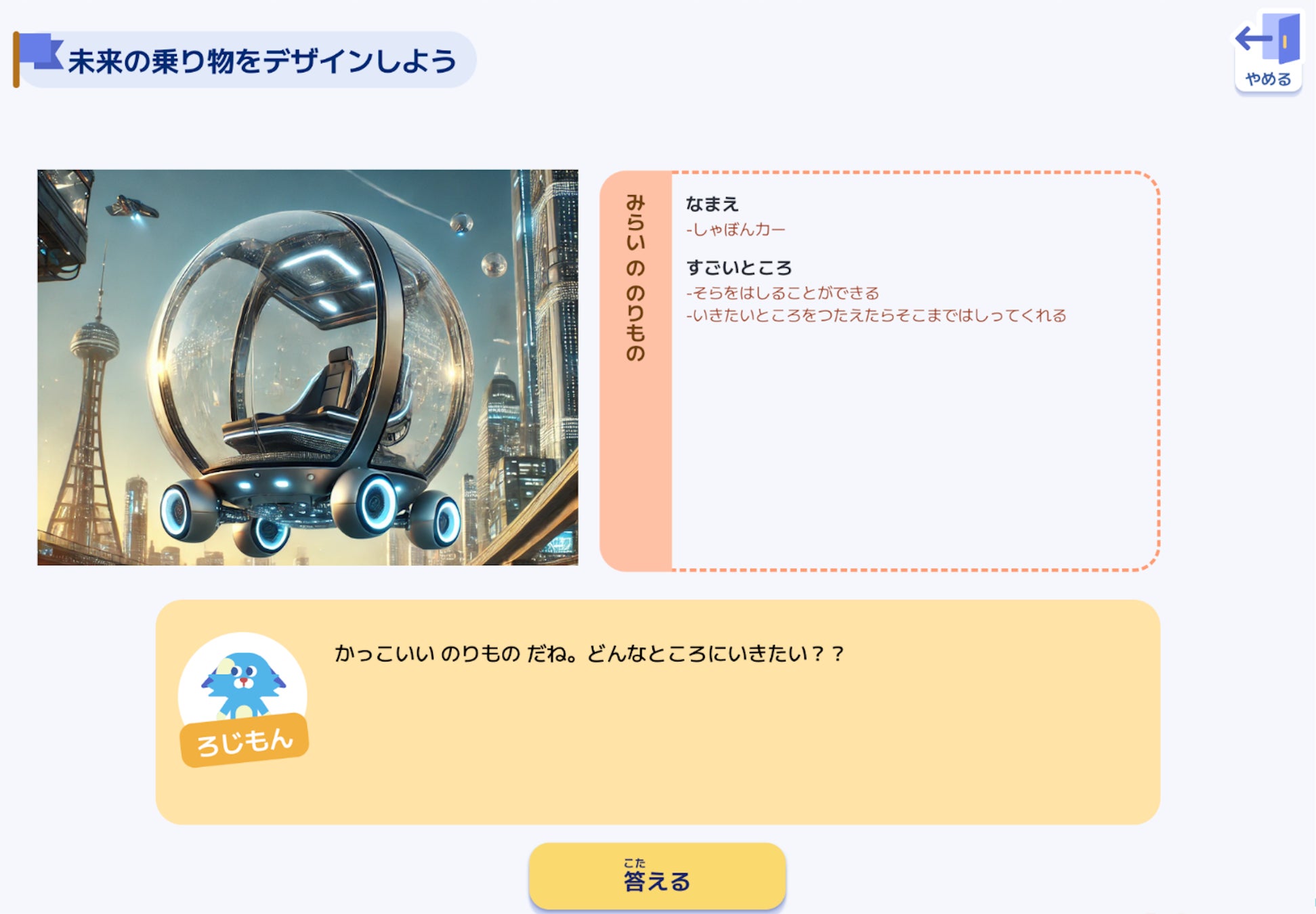 4~5歳児クラス「Class4」、5~6歳児クラス「Class5」と、成長段階に応じて構成されたカリキュラムです。音声入力機能を活用して、子どもたちは自由な発想を形にするプロセスを楽しみながら、主体性を養います。