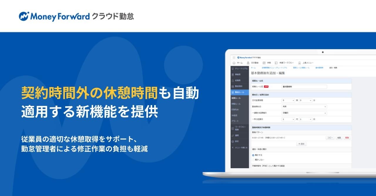 『マネーフォワード クラウド勤怠』、 契約時間外の休憩時間も自動適用する新機能を提供