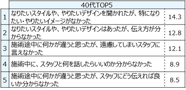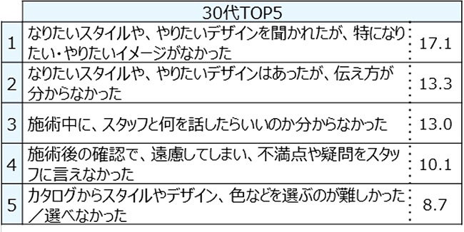 ■美容サロンで困った経験は全ての年代で「なりたいイメージがなかった」が1位に