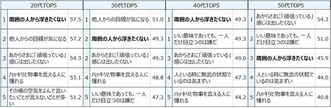■共通の価値意識としては「周囲の人から浮きたくない」