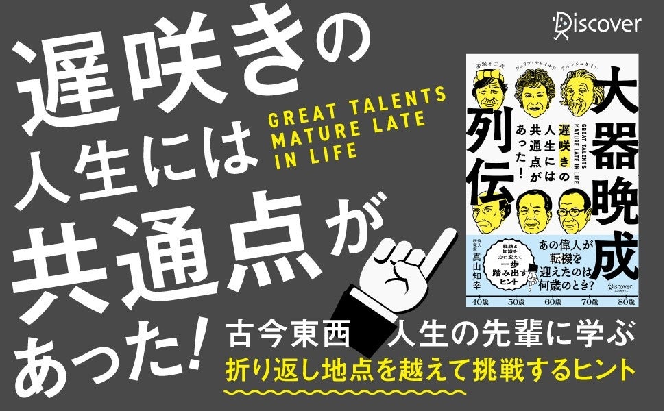 株式会社ディスカヴァー・トゥエンティワン(本社:東京都千代田区、代表取締役兼社長執行役員:谷口奈緒美)は2025年3月22日に『大器晩成列伝 遅咲きの人生には共通点があった!』(真山知幸著)を刊行しました。
