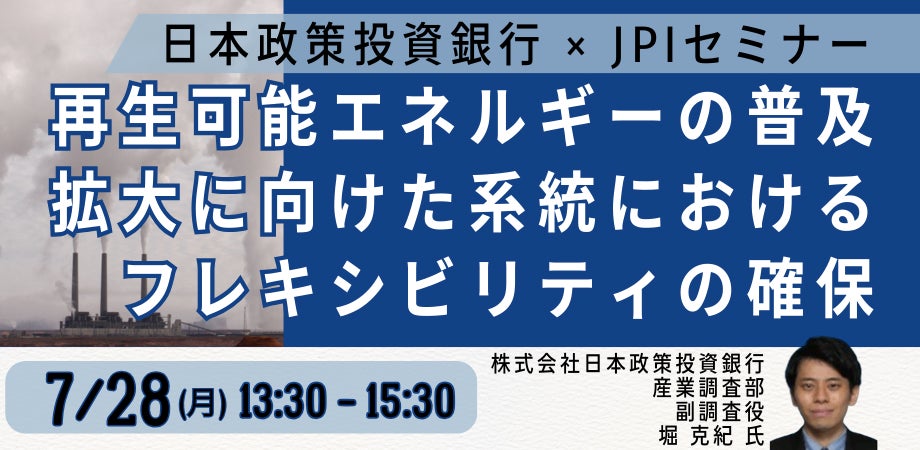 【JPIセミナー】「再生可能エネルギーの普及拡大に向けた系統におけるフレキシビリティの確保」7月28日(月)開催