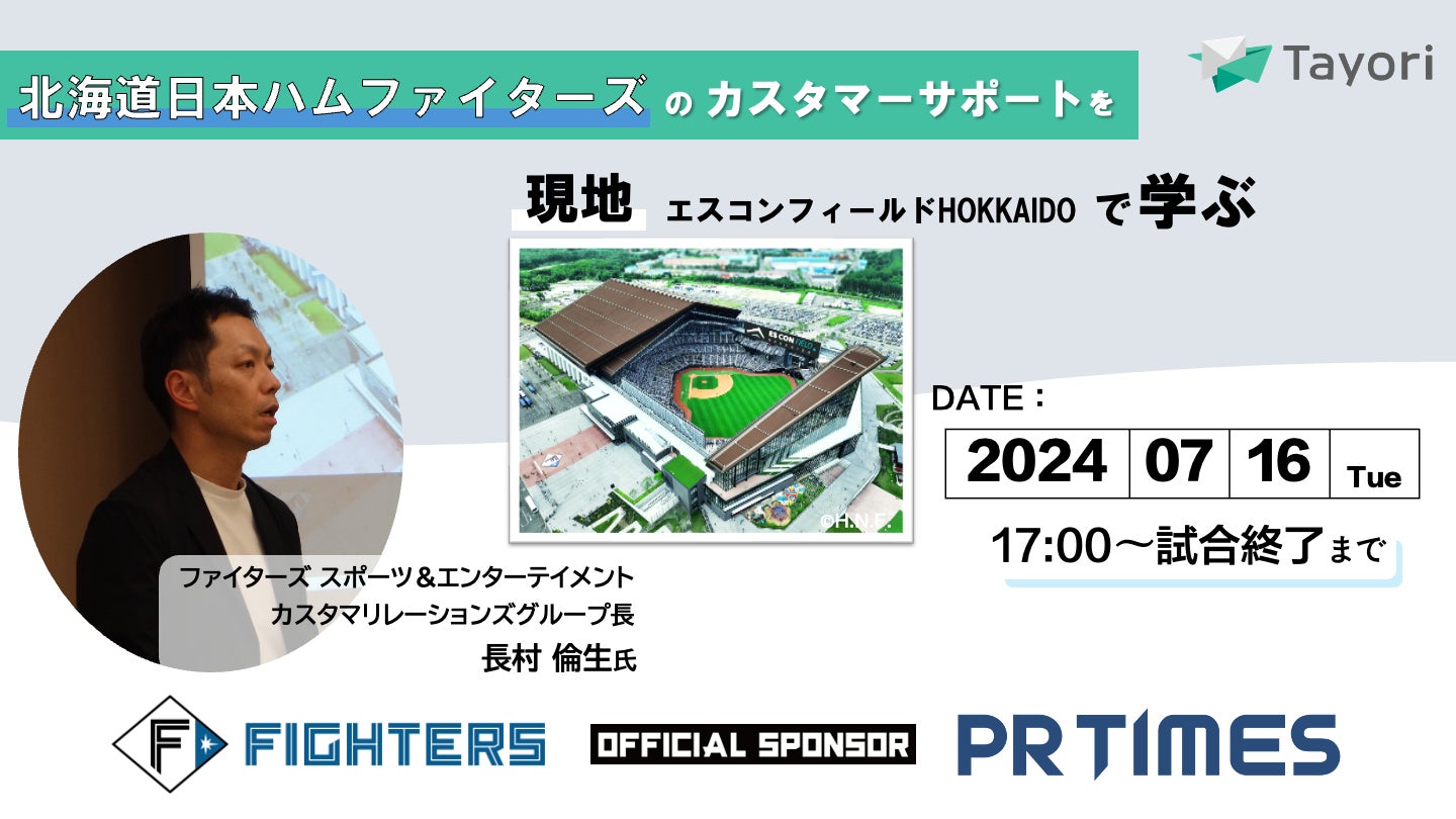 2024年より当社は北海道日本ハムファイターズのオフィシャルスポンサーに就任しました。この機会に、ファイターズの本拠地であるエスコンフィールドHOKKAIDOの会場を使用して、カスタマーサポート・顧客対応に関する特別イベントをTayoriをご利用の皆様を招待して開催します。