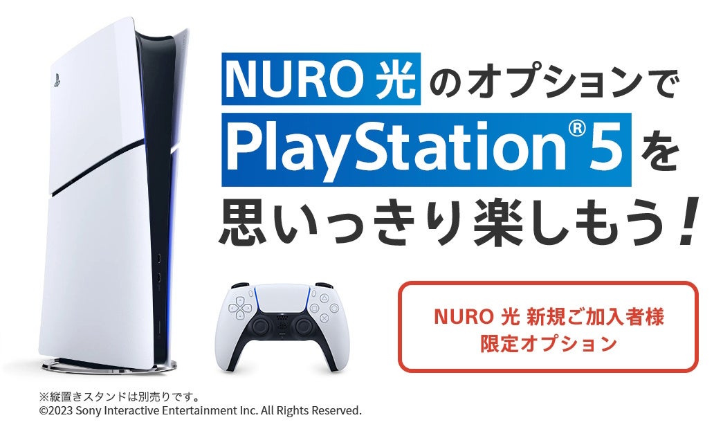 株式会社ソニー・インタラクティブエンタテインメントの提供するPS5®をリースで手軽に楽しめる「NURO 光」のオプションサービスです。月額1,430円の「PlayStation®5 デジタル・エディション for NURO」と、月額1,680円の「PlayStation®5 for NURO」の2種類を用意しており、3年間の契約継続期間(*1)においてPS5®を定額で利用できます。また、1年間のメーカー保証期間に加え、2年間の延長保証サービスを付帯しており、契約継続期間中保証サービスが受けられます。