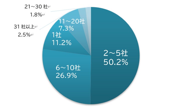 ・商品の仕入れ先数は2~5社が最も多く50.2%。次いで6~10社が26.9%。