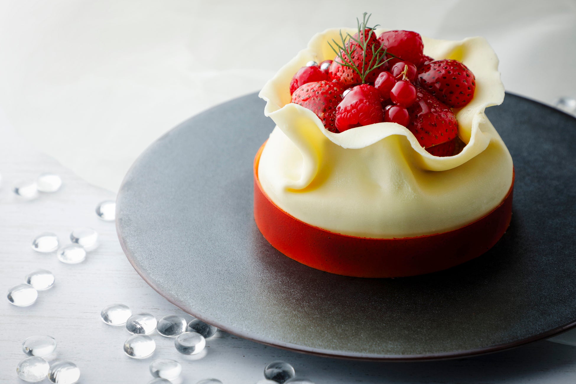 ベリーが華やかに飾られた甘さと優しさが詰まったブーケスタイルのケーキ。ホワイトチョコレートに包まれた近江米のもちっとした食感のタルトは、カスタードクリームを合わせたしっとりとした味わいで、アールグレイの風味が広がるクレームブリュレとのハーモニーをお楽しみいただけます。