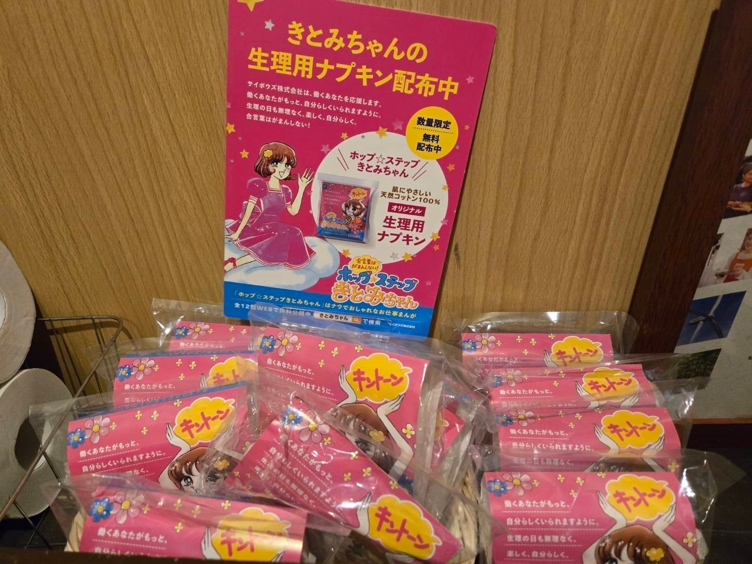 当プロジェクト活動では2025年3月8日の国際女性デー50周年を記念して、2025年3月3日(月)~4月4日(金)の期間、「和民のこだわりのれん街」大井町東口駅前店にてkintoneの公式キャラクター「ホップ☆ステップ きとみちゃん」オリジナル生理用ナプキンの配布を実施いたします。ワタミは「合言葉はがまんしない!」プロジェクトに賛同し、女性が生き生きと活躍する社会を応援してまいります。