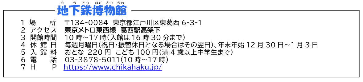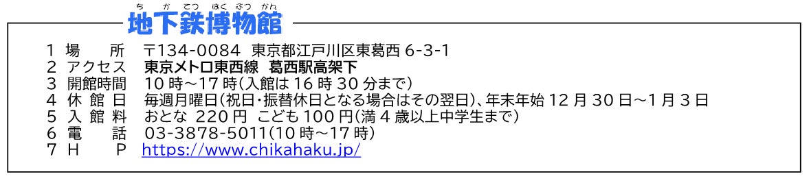 ※地下鉄博物館の入館料は、ご来館の都度お客様のご負担となります。