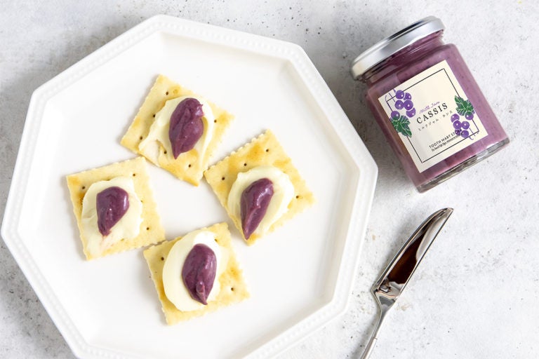 華やかな色合いはカシスの果実由来。奥行きのある香りと爽やかな酸味は、一度食べるとクセになる甘酸っぱさです。