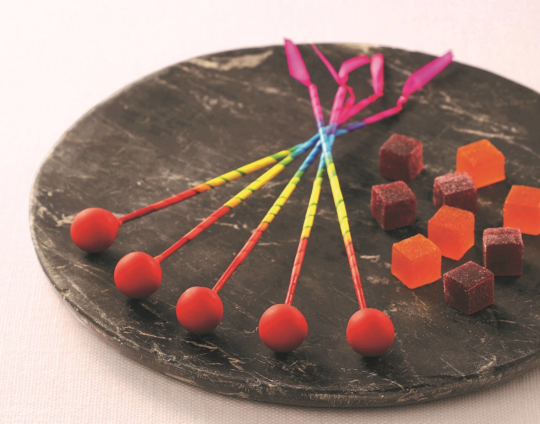 インスピレーション源は筒井時正玩具花火製造所の線香花火。火が灯ったような真っ赤なガナッシュを溶かすように味わうと、ポッピングキャンディーがパチパチはじけるサプライズ!縁日を思わせるカカオのパート・ド・フリュイもセットした遊び心光るスイーツです。同封の2次元コードを読み取り、線香花火の動画をご覧いただけます。