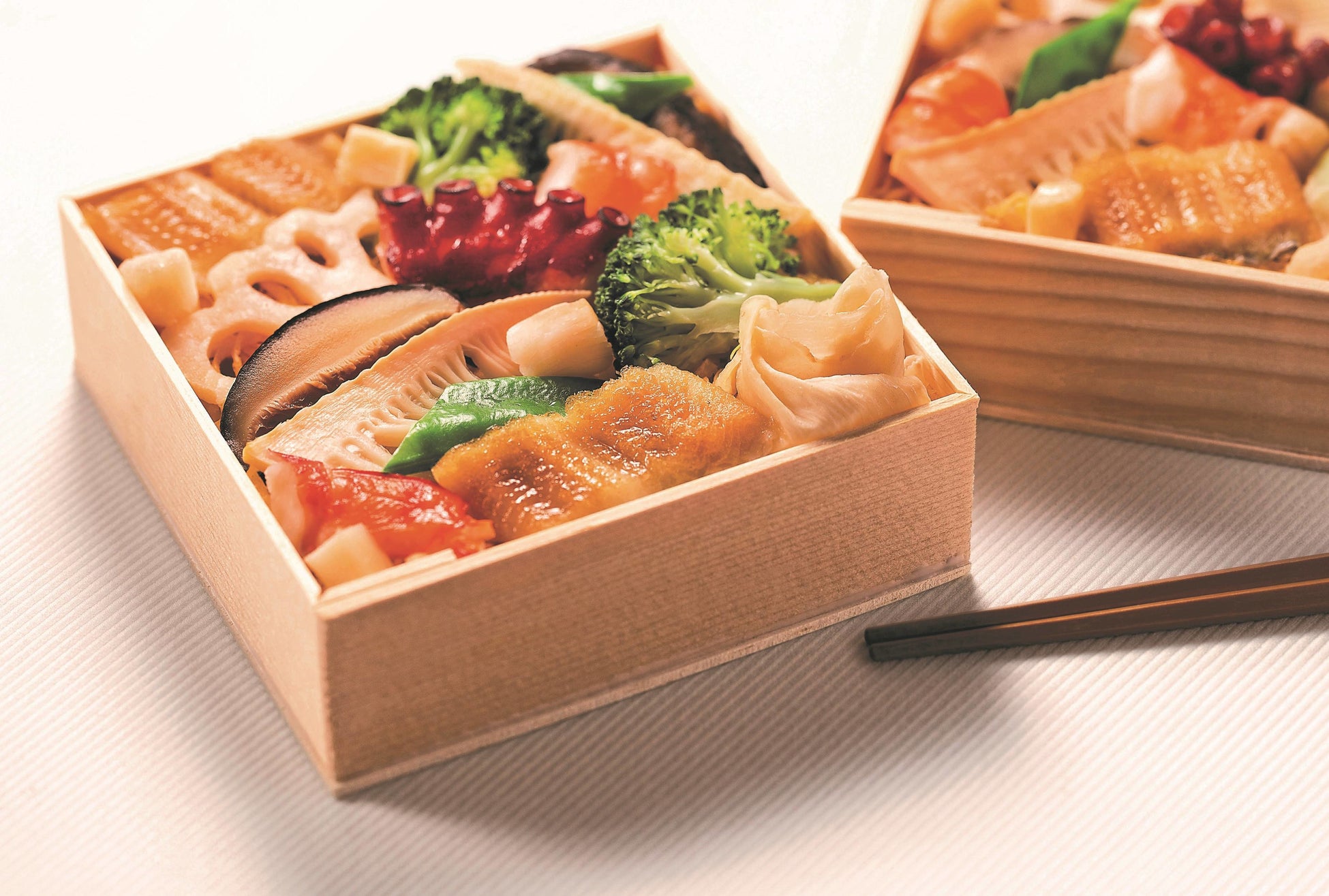 さっぱりした酢飯や、一つひとつ丁寧に味付けした具材など、〈菊乃井〉の“しごと”が光るちらし寿司です。えび、あなご、しいたけなど定番の具材から、ブロッコリーやイタヤ貝柱などちらし寿司には珍しい具材まで、目を楽しませる豊かな彩りと食してうれしいバランスの良い味わいに。