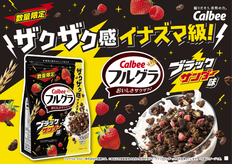 昨年の数量限定商品で最高※1ザクザク感イナズマ級!人気チョコ菓子「ブラックサンダー」と夢のコラボレーション商品『フルグラ® ブラックサンダー味』