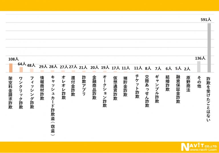 被害を受けた・受けそうになった詐欺は、「架空料金請求詐欺」が最多