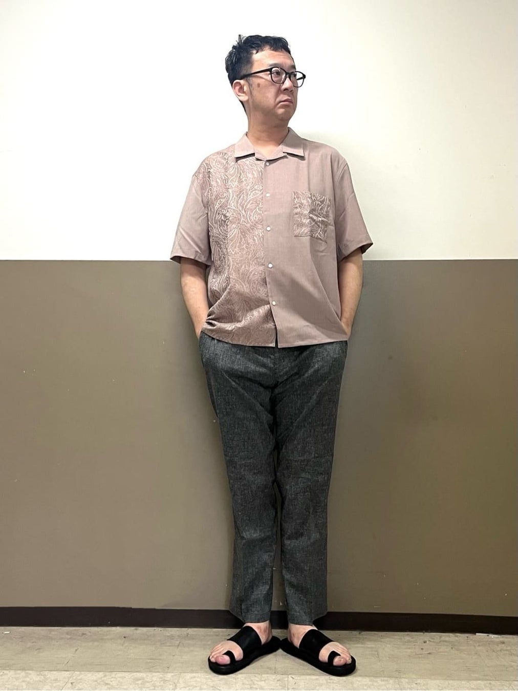 ペイズリージャカードの半袖オープンカラーシャツは、夏のリゾート気分をぐっと盛り上げてくれるアイテム。街歩きやリゾートなど、休日のお出かけにぴったりな大人のリラックスコーデです。合わせたのは、軽くて風通しのいい麻×ポリエステル素材のシャーリングパンツ。快適なのにラフすぎず、程よく上品にまとまります。足元はサンダルやスリッポンで、軽快に仕上げるのがおすすめです。