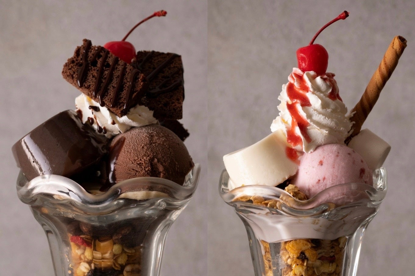 ・ブラウニチョコレートサンデー / ストロベリーミルクサンデー 各780円(税込858円)