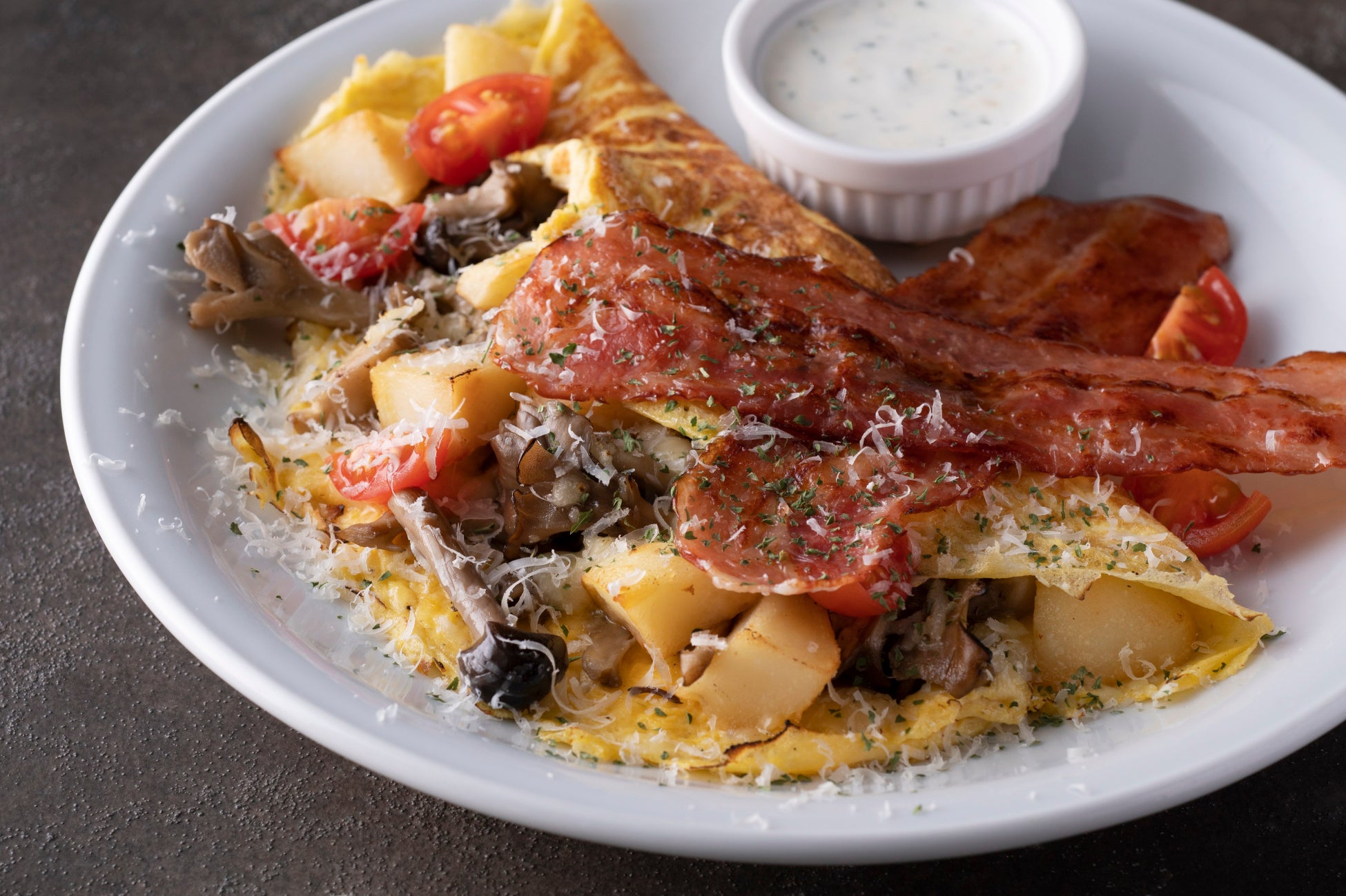 キノコポテト&クリスピーベーコンデンバーオムレツ