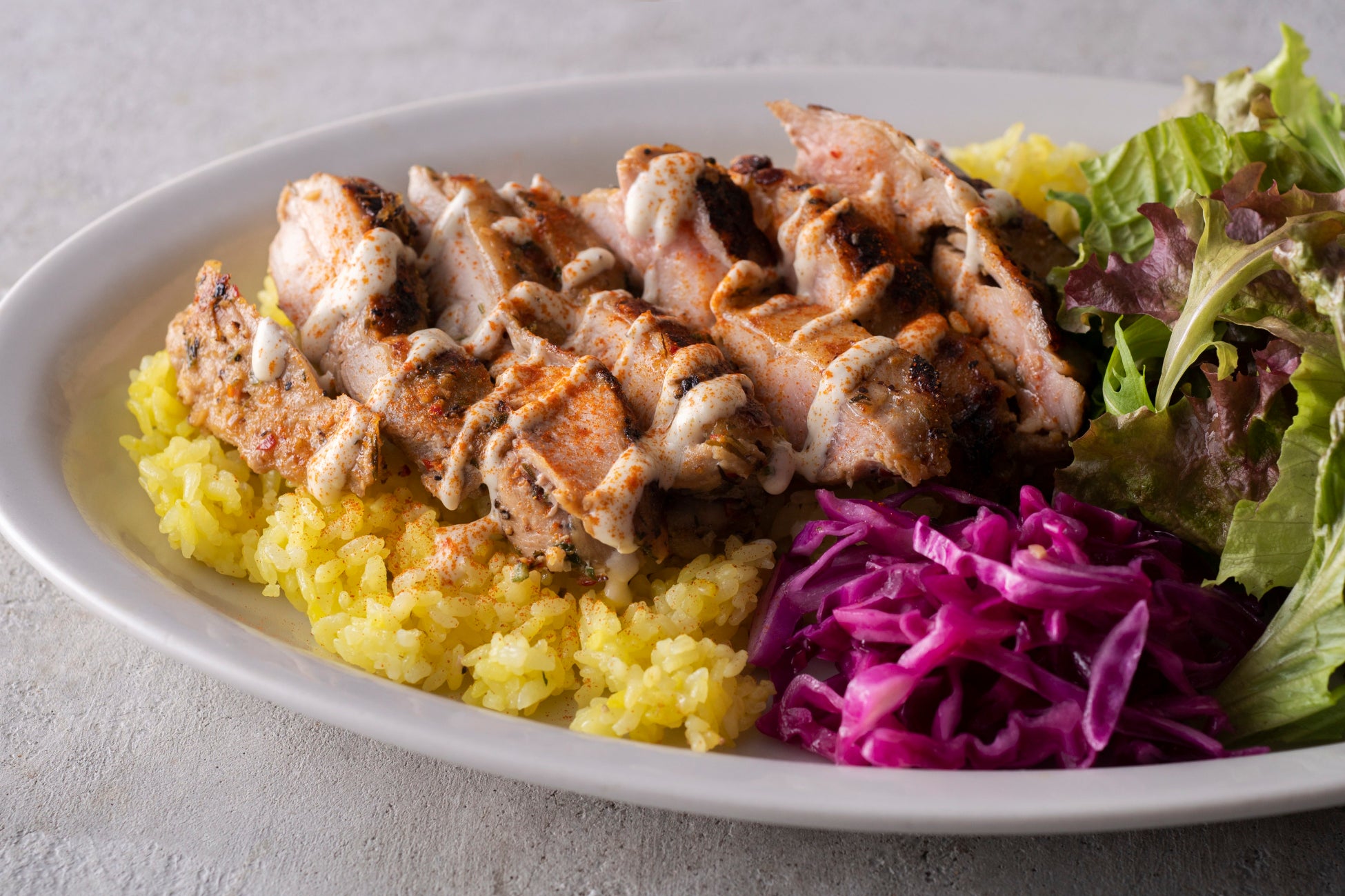 食欲のそそるターメリックライスに、スパイシーなローストマサラチキンを合わせたボリュームのあるライスメニュー。お好みでサルサソースやフライどエッグをトッピングし自分好みの一皿にもできます。