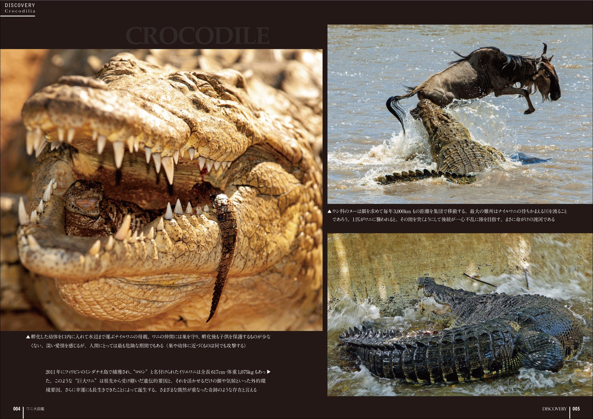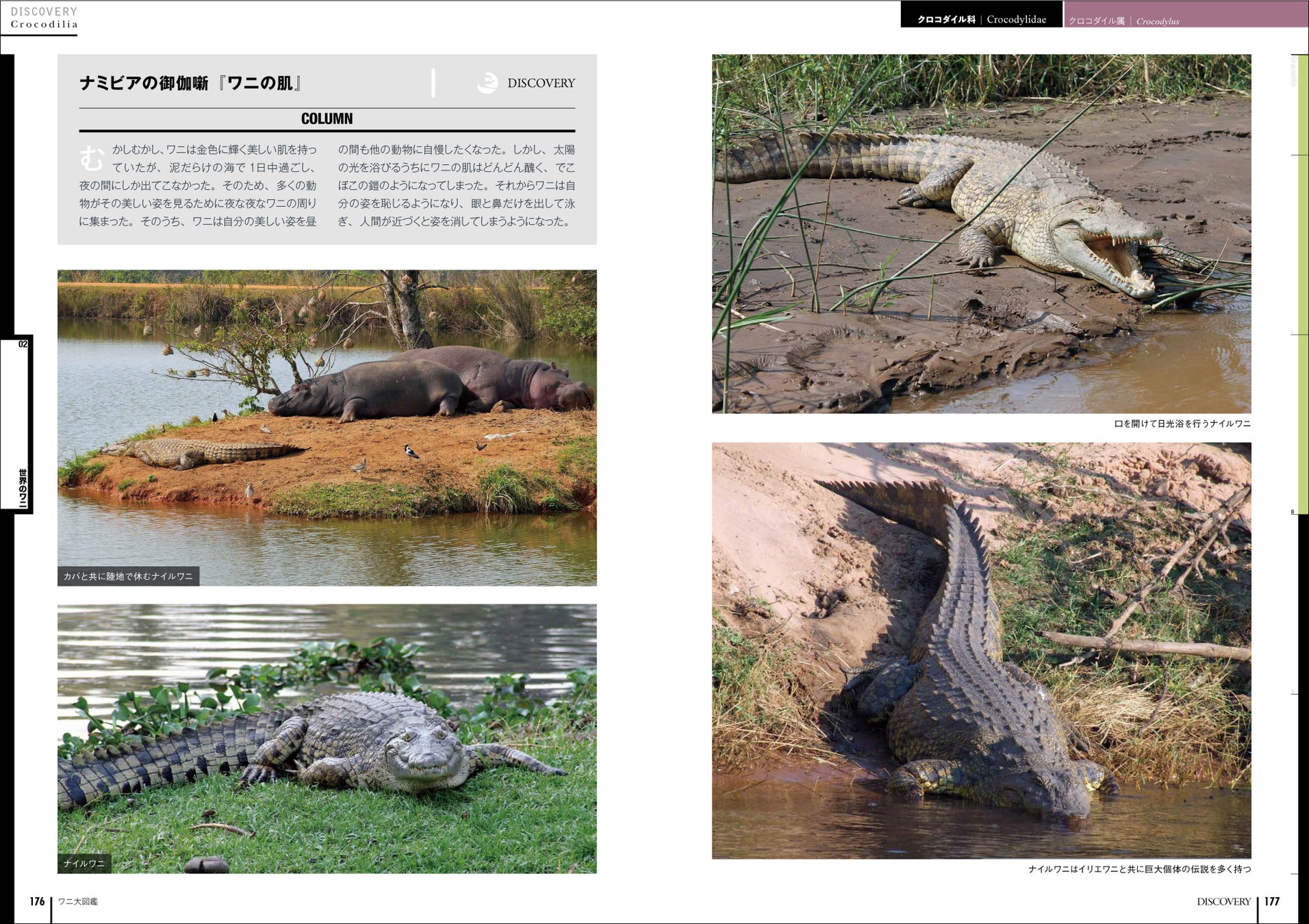 現生するワニの分類/ワニはどこから来たのか/大絶滅を乗り越えたワニ/日本のワニ/分布/生息環境/成長/骨と筋肉/歯と顎/食性と捕食方法/雌雄判別/産卵/性決定/孵化
