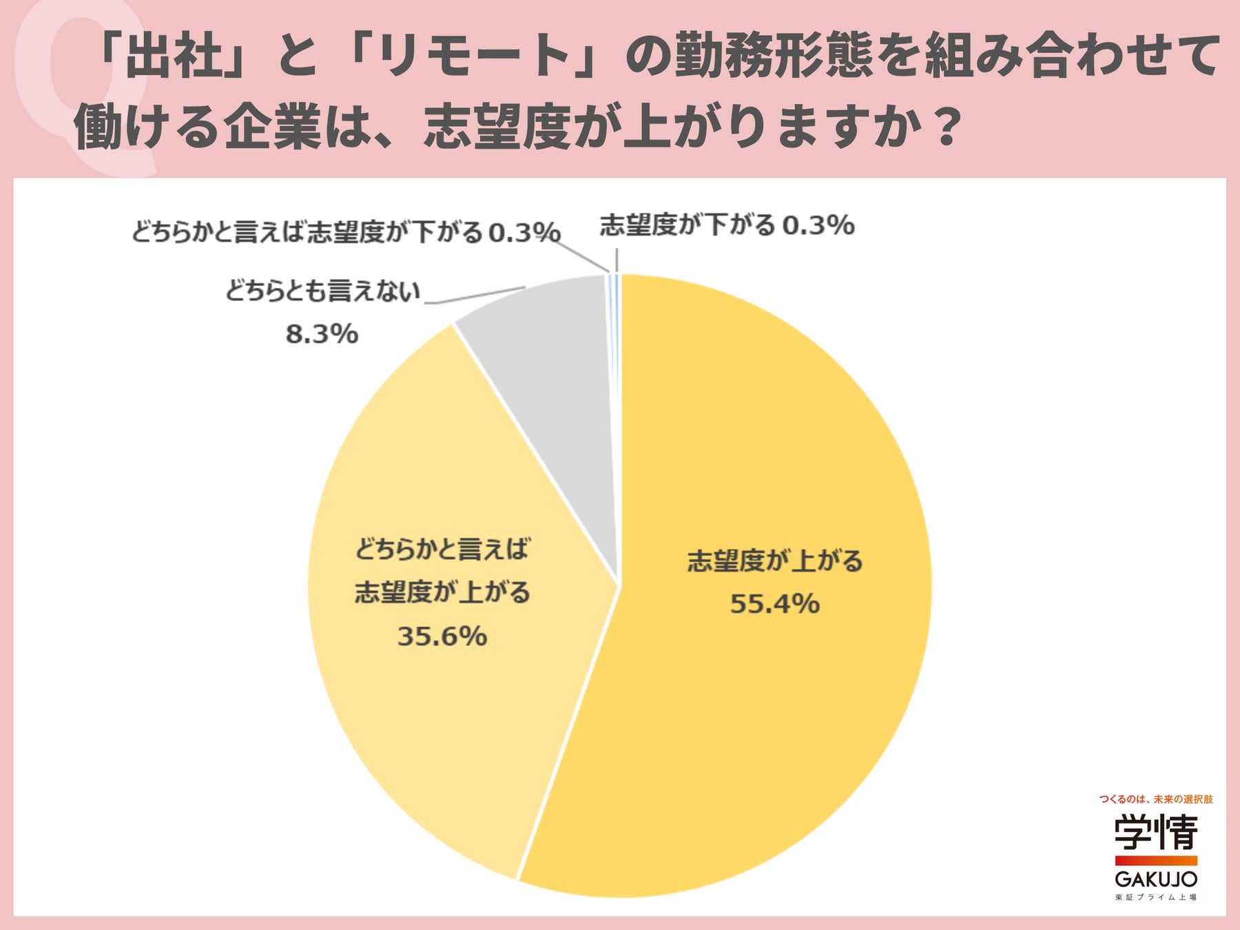 出社・リモートを組み合わせて働ける企業は「志望度上がる」学生が9割。「仕事とプライベートのバランスがとりやすい」「安心感ありつつ負担を軽減」との声