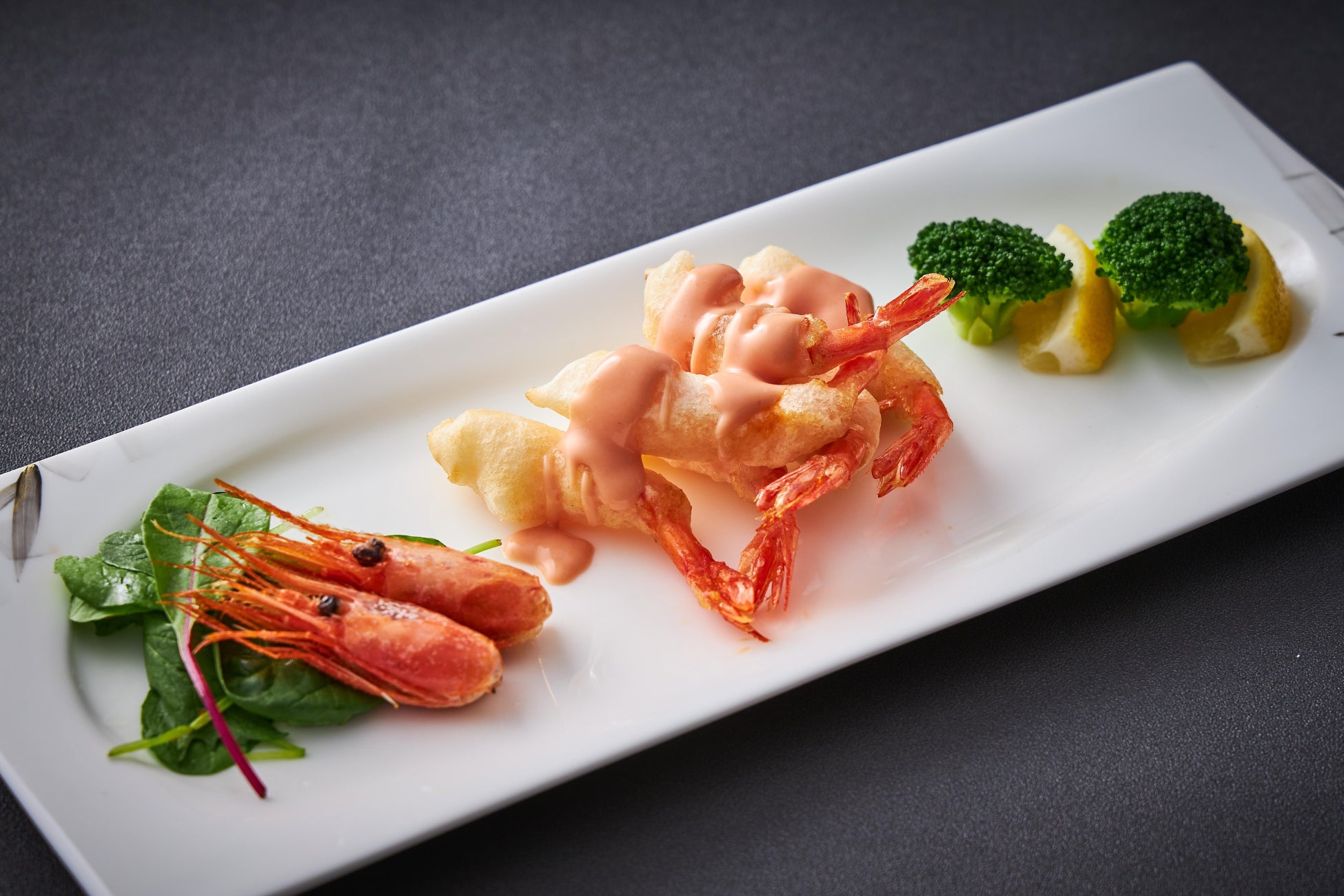 北陸産甘海老の衣揚げ オーロラソースかけ ¥2,700