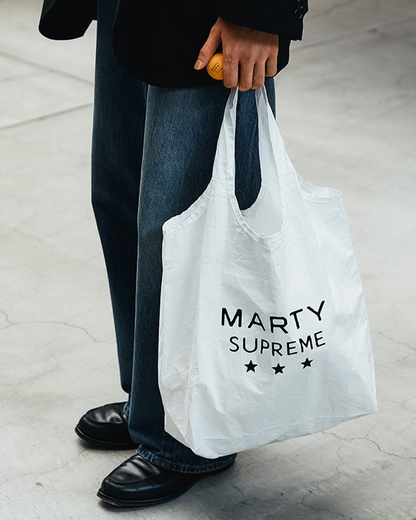 映画『マーティ・シュプリーム 世界をつかめ』の世界観をサンプリングした限定プロダクト。大島依提亜氏のディレクションにより、映画の断片をグラフィックとして再構築したウェアやアイテムを展開します。