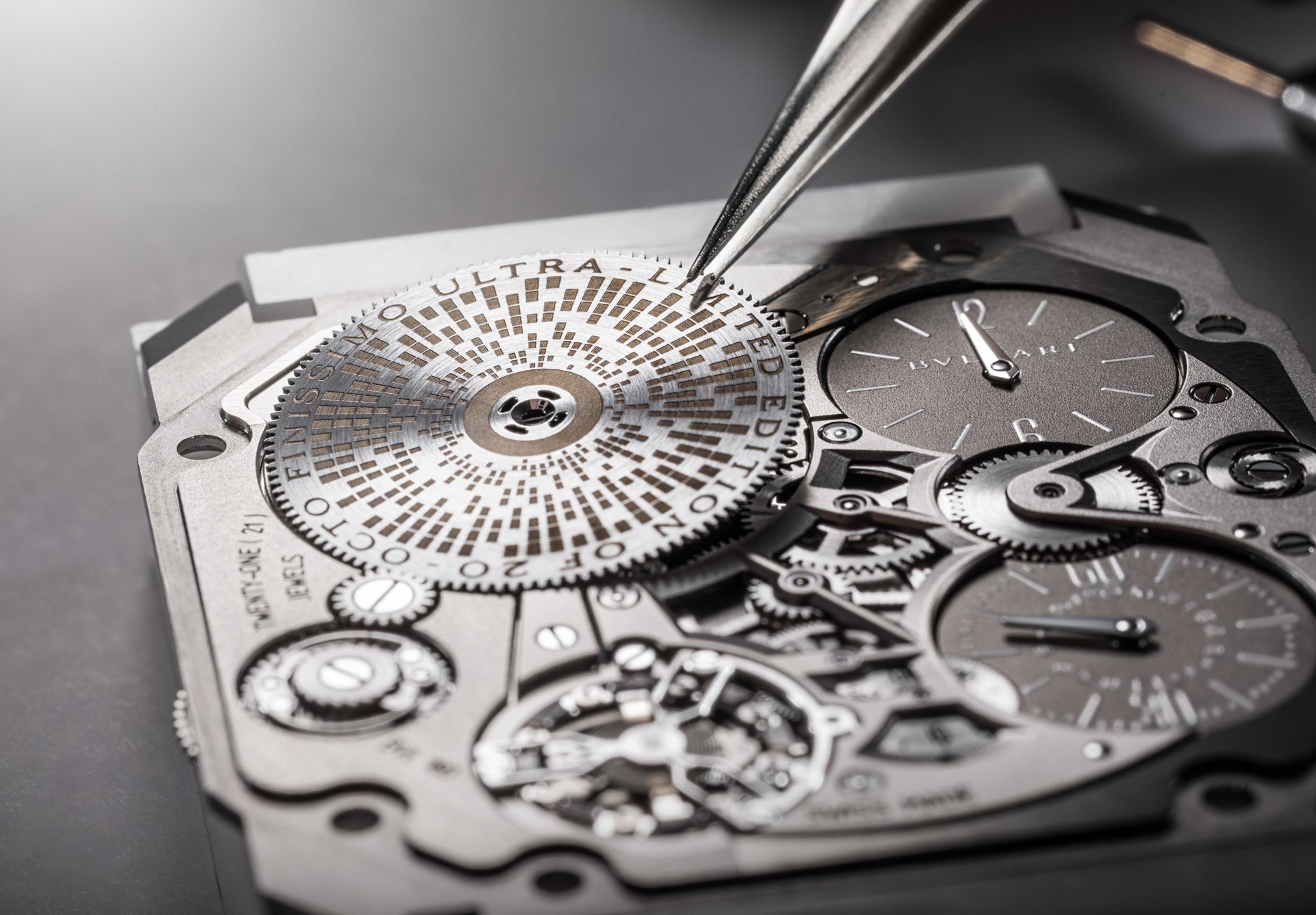 「オクト フィニッシモ ウルトラ」はすでにムーブメントの薄さの限界に達していたため、「オクト フィニッシモ ウルトラ COSC」では、サファイアクリスタルを最適化することでケースのさらなる薄型化を図りました。エンジニアたちは忍耐強く細心の注意を払いながら段階的にステップを進め、10分の1ミリメートルを削ることに成功し新たな世界記録を樹立することができました。