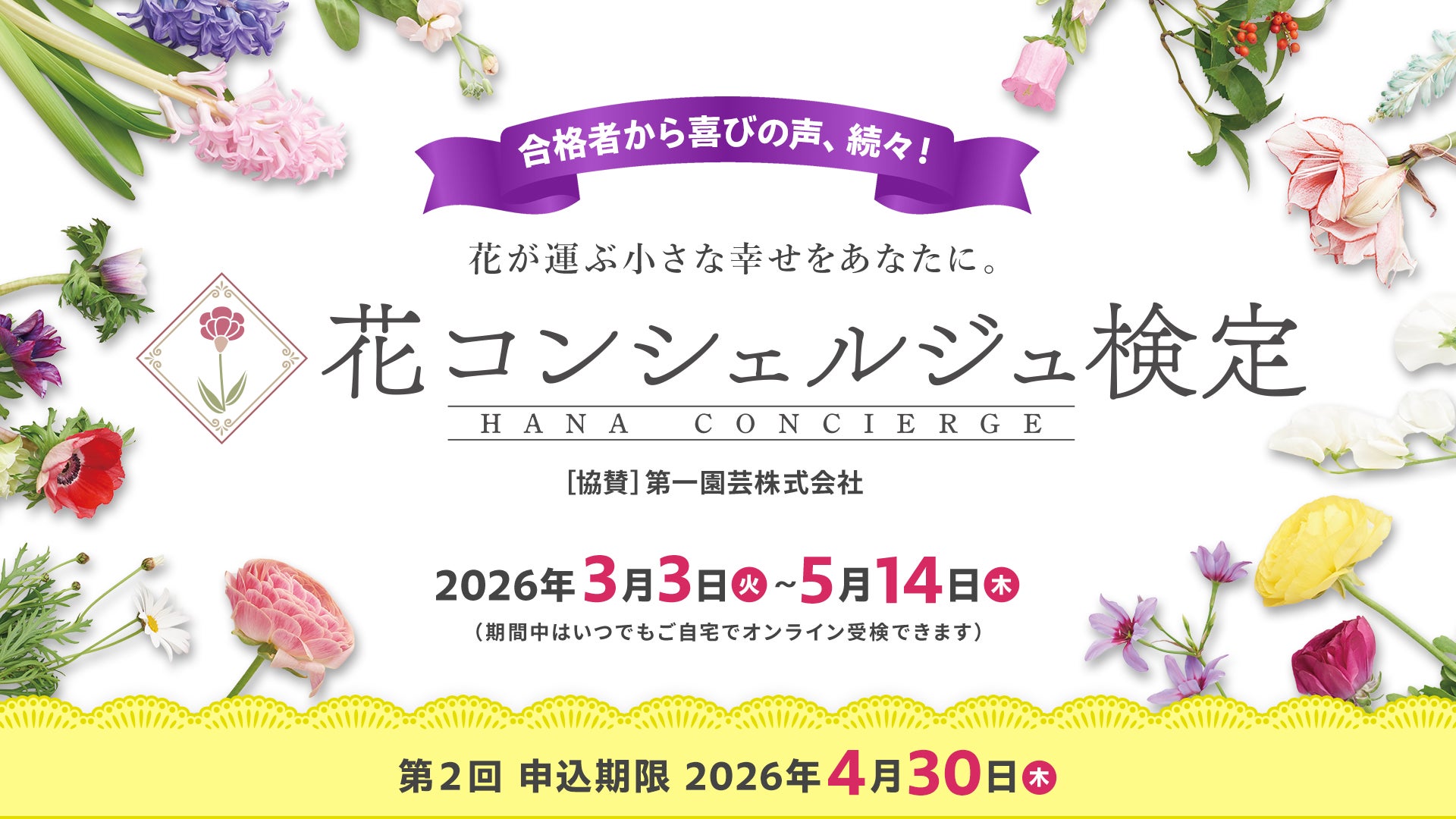 ユーキャン『検定ひろば』にて、2026年3月3日より『第2回 花コンシェルジュ検定』の受検期間がスタート!