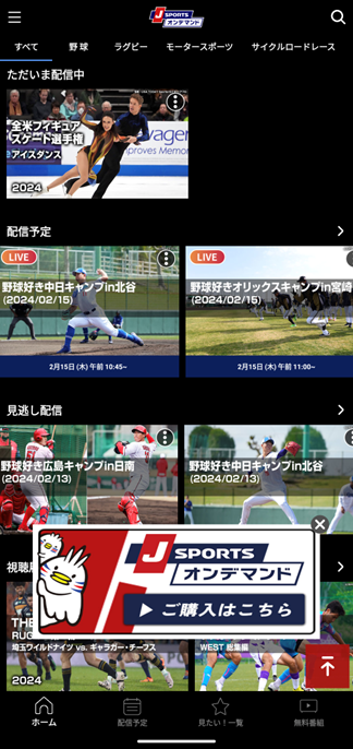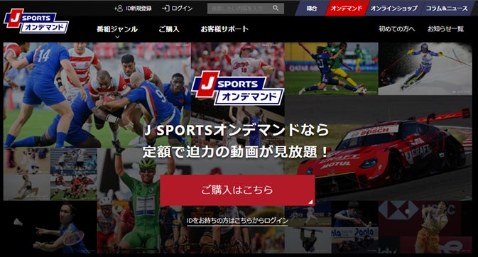 J SPORTS 1~4で放送している番組※1をLIVE配信中心に提供しており、見逃した試合やもう一度見たいレースなど、いつでも・どこでも視聴可能なサービスです。また、「J SPORTSオンデマンド」限定LIVE番組やオリジナル番組も配信しており、いつでも・どこでもスポーツ好きな方にお楽しみいただけます。