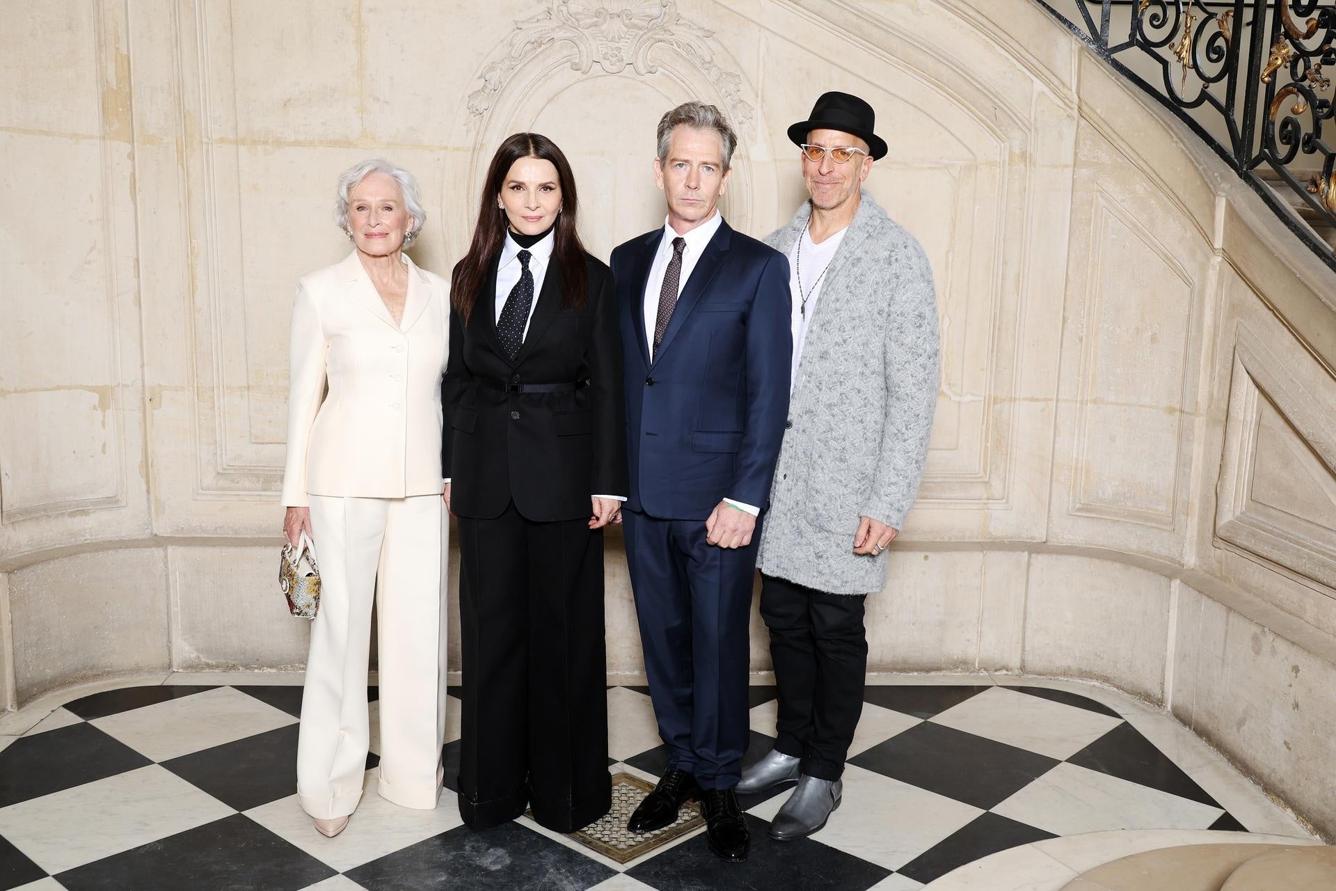グレン・クローズはウール&シルクのホワイトスーツに、シューズを合わせた装いを披露しました。ジュリエット・ビノシュは2024年フォール コレクションより、ウール&シルクのブラックスーツとホワイトのコットンシャツを着こなしました。
