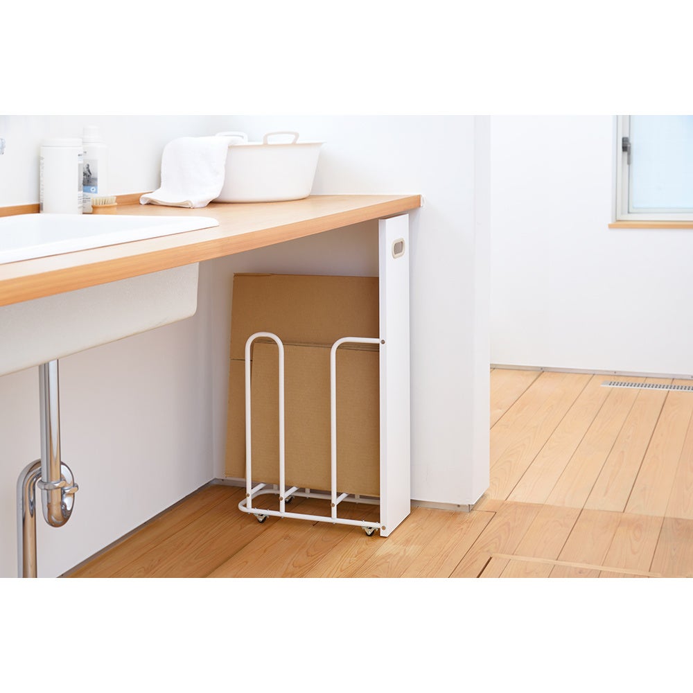 ■サイズ(約):【幅12cmタイプ】幅12.8奥行45.4高さ85.0cm・重量2.25kg 【幅18cmタイプ】幅18.8奥行45.4高さ85.0cm・重量2.65kg ■色:ホワイト×グレー・ホワイト×ライトベージュ計2色 ■素材:本体…スチール(エポキシ樹脂粉体塗装)取っ手…シリコーンゴム ■中国製(企画:日本)