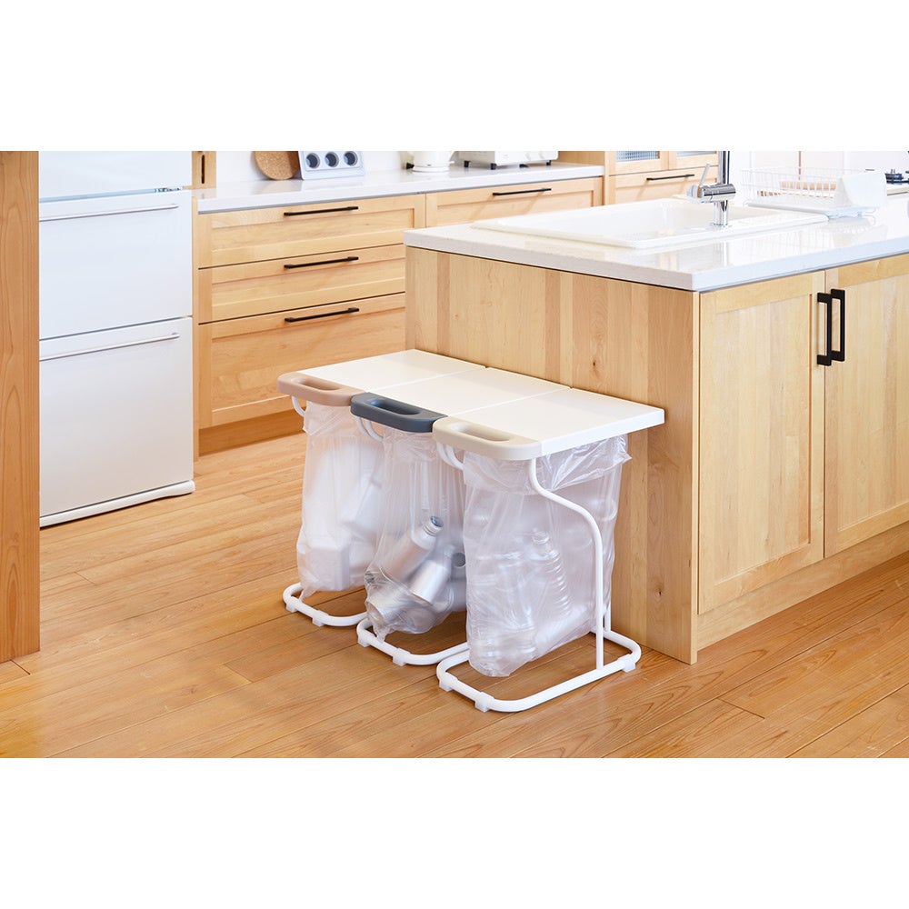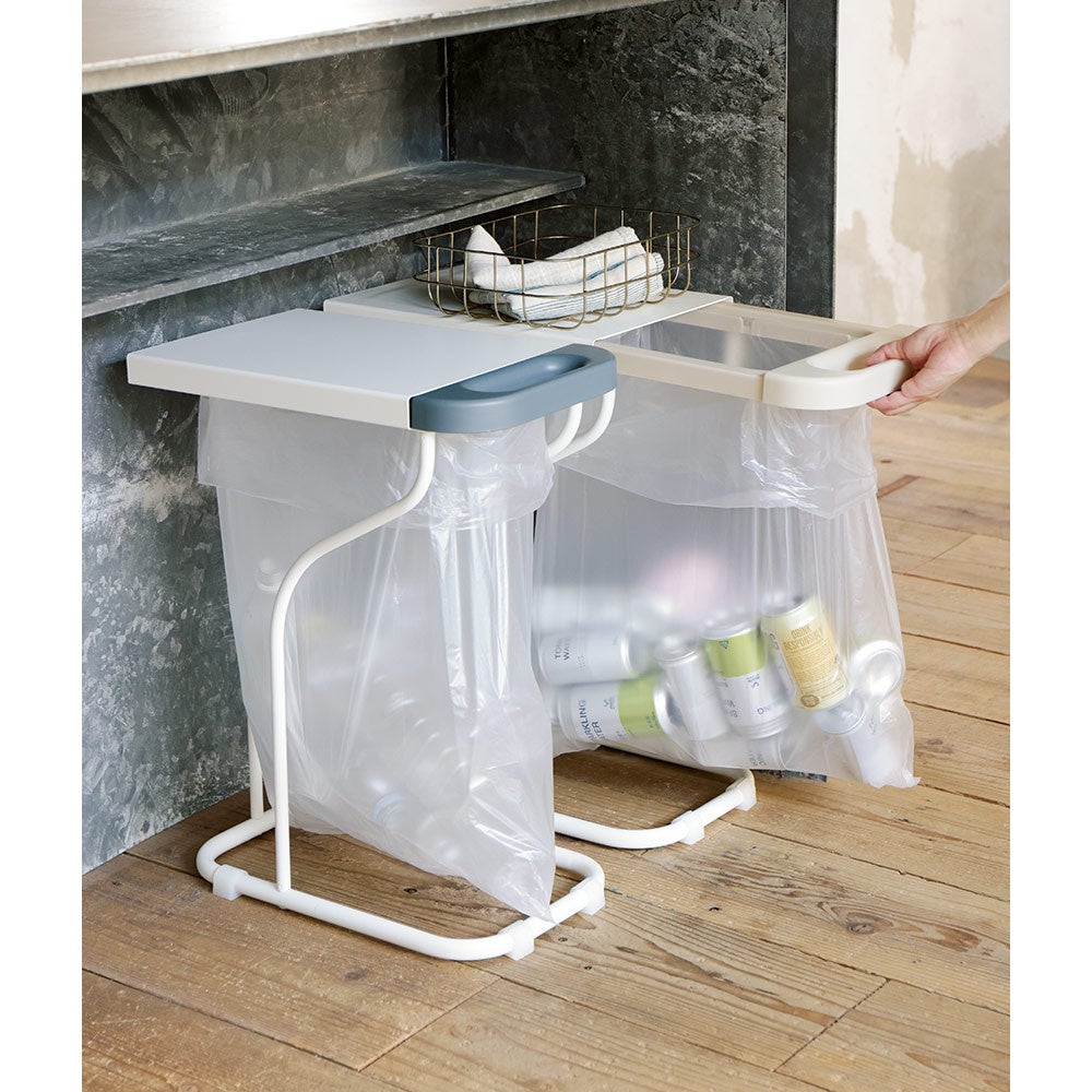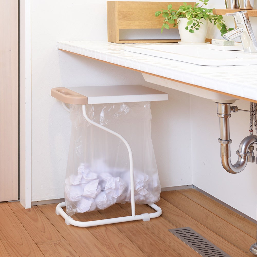 ■色:ホワイト×グレー・ホワイト×ライトベージュ・ホワイト×ピンクベージュ計3色 ■サイズ(約):幅26奥行42.7高さ55.1cm・重さ2.7kg ■素材:本体…スチール(エポキシ樹脂塗装) 袋ホルダー…ステンレス ■中国製(日本企画)