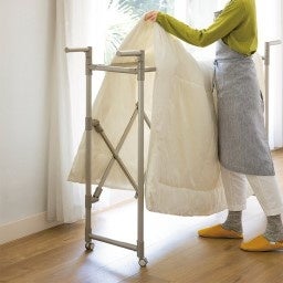 - 家族の帰省に備えた布団干しがラクな室内物干し