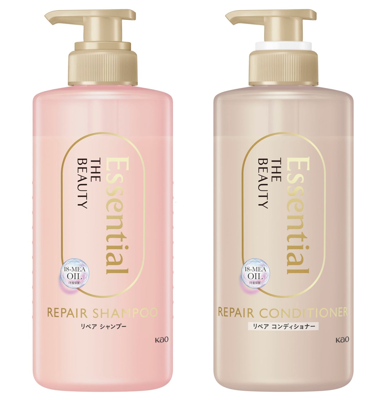 髪にもベースメイク 毛流れ整え、ツヤ感や手触りを補整し、感動のうるサラ髪へ 『Essential THE BEAUTY リペアシャンプー・コンディショナー』改良新発売
