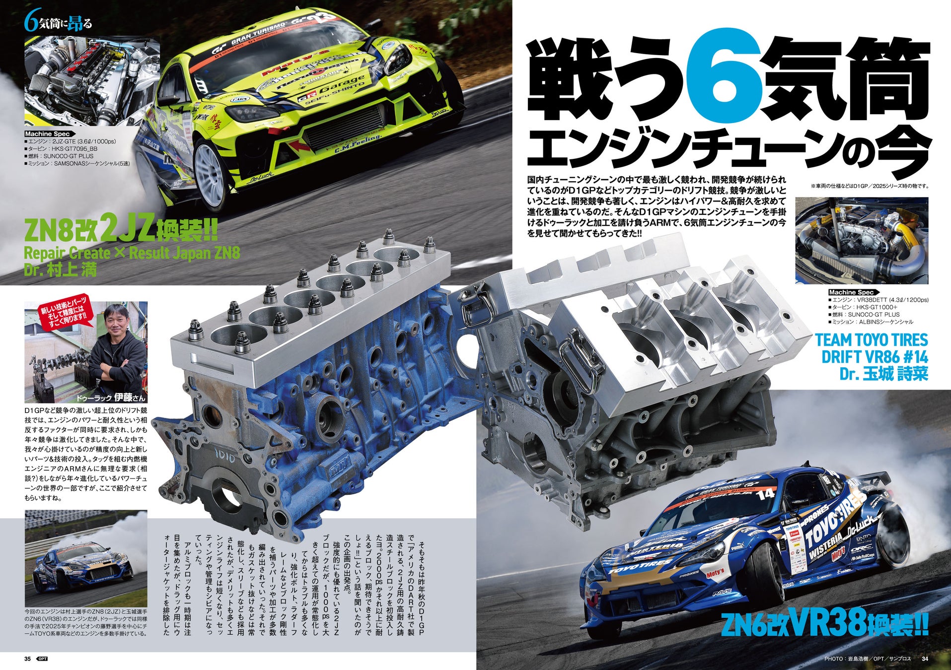 6気筒エンジンをハイパワー化したマシンたちが鎬を削り合う競技ドリフトシーン。そこで生み出された最新技術の数々を、エンジンコンストラクターとして名高いドゥーラックに教えてもらった。1000psオーバーに耐えうる2JZとVR38、その秘密を見ていこう。