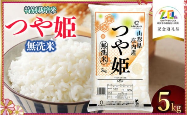 ◆ お礼の品名: 【ふるさとチョイス限定】鶴岡市制20周年記念 つや姫 無洗米 5kg 特別パッケージ