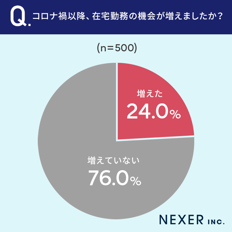 24%の方が「コロナ禍以降、在宅勤務の機会が増えた」と回答しています。