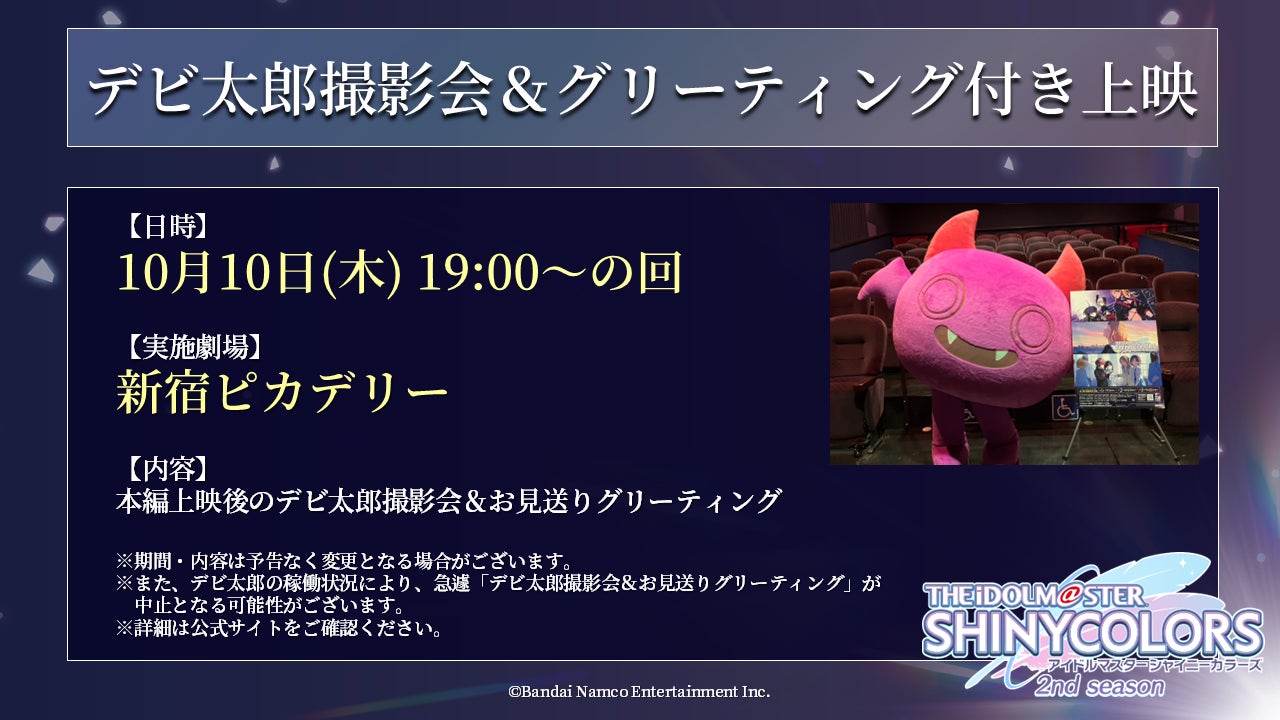 10月10日(木)新宿ピカデリーにて、デビ太郎の撮影会&グリーティング付き上映の実施が決定いたしました!