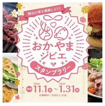 11月1日から「おかやまジビエスタンプラリー」を開催中!県内のジビエメニュー提供店やジビエ商品販売店でスタンプを集めて応募いただくと、抽選でジビエ加工食品や革製品が当たります。