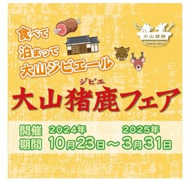 10月23日より「大山猪鹿(ジビエ)フェア」を開催中!景品付きスタンプラリーや宿泊を伴うディナーを召し上がった方にソフトドリンク1杯無料のキャンペーンも実施いたします。