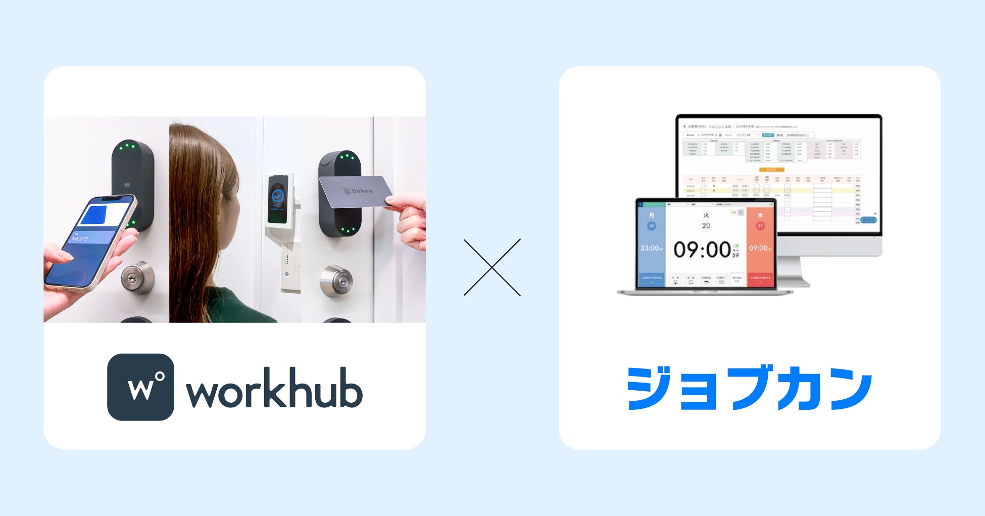 『ジョブカン勤怠管理』とビットキーの「workhub」が連携を開始入退室履歴で自動出退勤打刻が可能、労働時間の把握が容易に