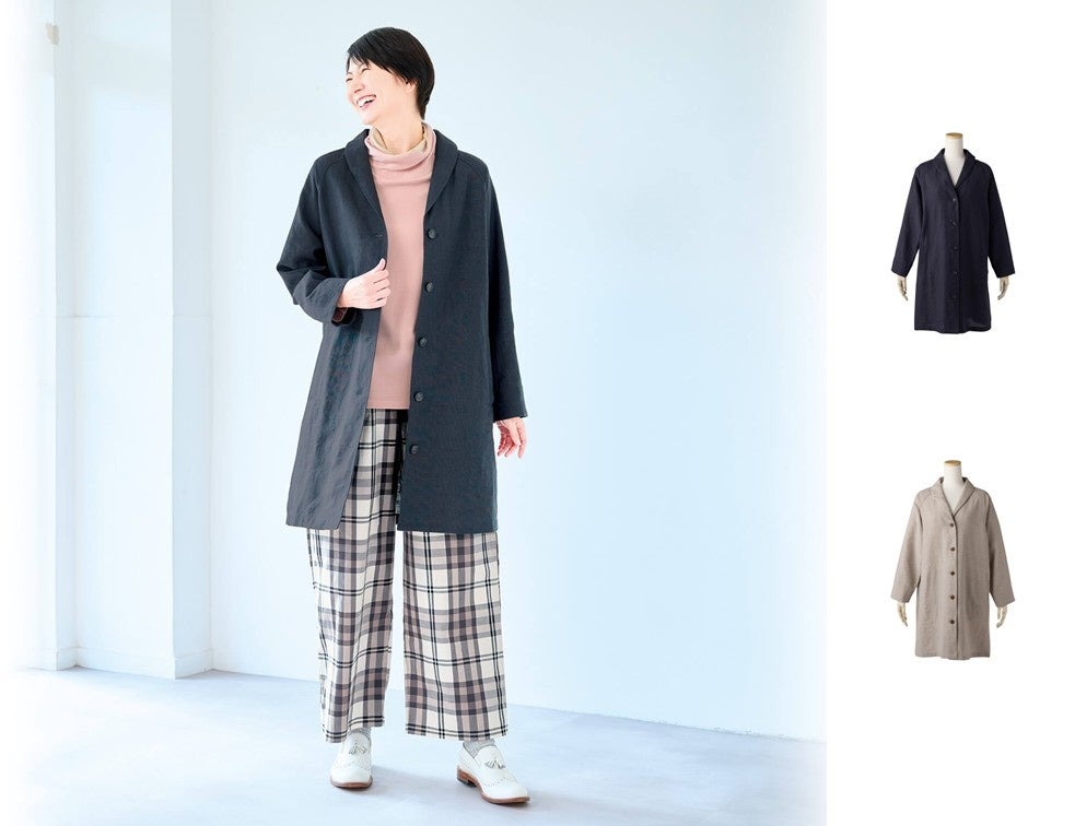 ◆綿麻ショールカラーコート◆全2色