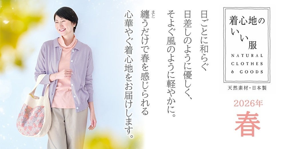 【天然素材・日本製】のアイテムをお届けする「着心地のいい服」が2026年『春の新作アイテム』の一般販売を開始!
