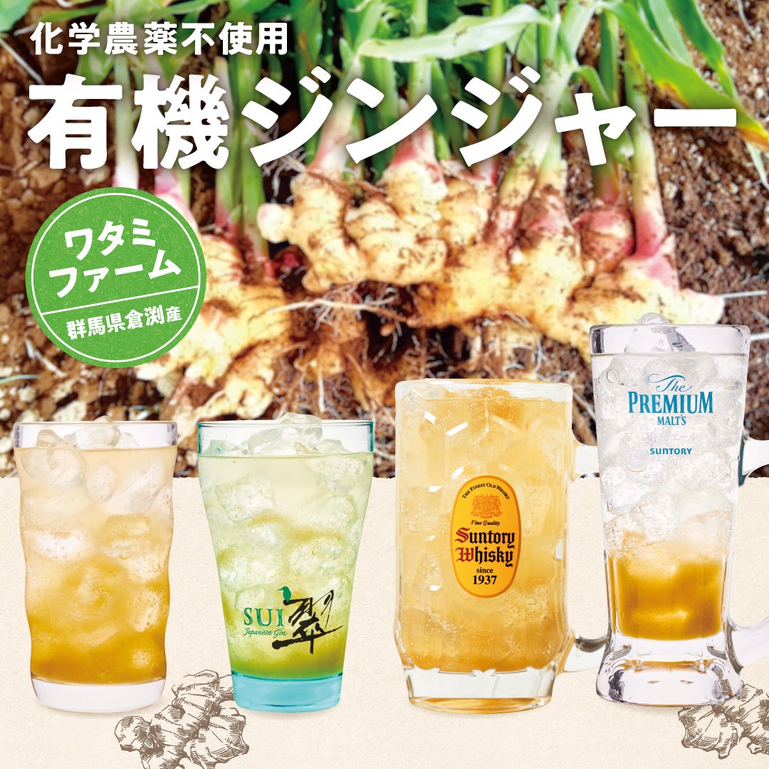 ワタミファームでは創設の2001年から有機農業に取り組んでおり、土壌の持つ本来のチカラを引き出した滋養あふれる野菜作り、環境負荷の少ない土づくりに取り組んでいます。今回の特撰メニューでは群馬県倉淵農場産有機生姜を丸ごとすりつぶした果肉たっぷりのシロップを定番ドリンクとあわせたオリジナルドリンクにしてご提供します。すっきりとした味わいの中に感じる生姜のさわやかな風味をぜひお楽しみ下さい。